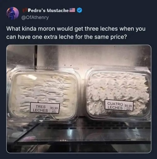 minus-squareTimeNaan@lemmy.worldlinkfedilinkarrow-up1·3 months agoDumbass eastern european here - what is Tres Leches?
