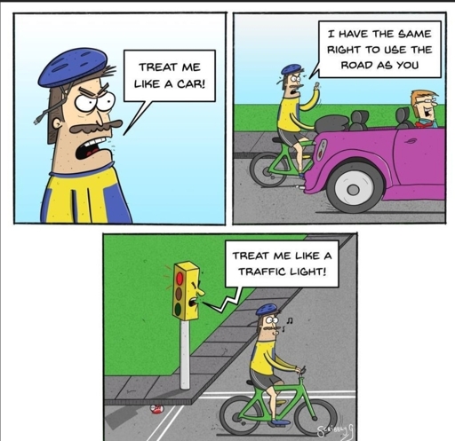 Possibly I got distracted by your sentence implying there is no reason to run a red, because it shows you really don’t understand. I have multiple intersections on my morning commute where the safest time to cross the intersection is when I have a red light. Sometimes it’s legal for me to run them, sometimes it isn’t. That happens when intersections are designed for cars and not bicycles. If they were designed just as much for bikes, there would be a leading bike indicator at every intersection in America that has some type of bike infrastructure. You acted like that Anatole France quote wasn’t relevant when it unequivocally is. If the safest thing for me to do is break the law, then the law is wrong.