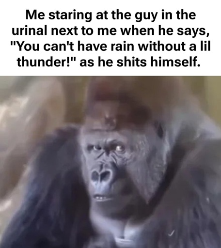 One time I was in this bar bathroom in Korea at the urinal doing my business and this Korean guy comes in and goes to the urinal next to me and starts doing his. A few seconds in he looks over at the big foreigner (me) and sticks out his free hand in a handshake gesture and says “Nice to meet you.” Different culture…