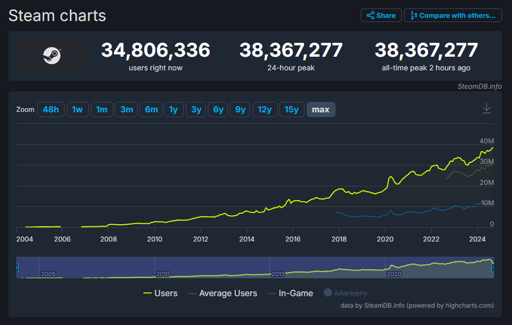 mr_MADAFAKA@lemmy.ml to Steam@lemmy.ml · 2 years agoSteam has now reached 38 million concurrent userslemmy.mlimagemessage-square6linkfedilinkarrow-up10arrow-down10